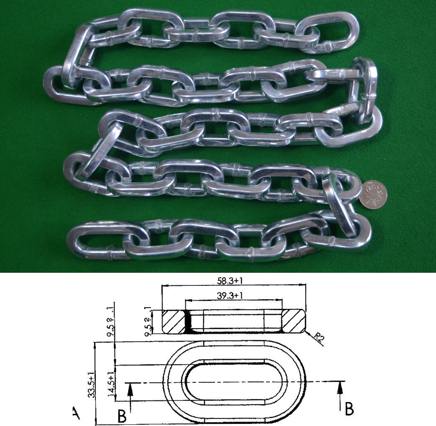 9.5mm方合金鋼鎖鏈(環保鋅電鍍)